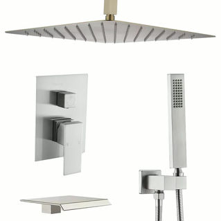 Bring a refined, modern touch to any bathroom with this 16-inch square brushed gold shower faucet set. Designed for apartments and hotel suites, it combines a large overhead rainfall shower with a convenient handheld sprayer for versatile daily use.